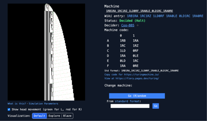 「我算是运气好,因为实验室的人已经开始抱怨我占用CPU过多,所以我不得不稍微收敛一些。」Kropitz在BusyBeaverChallenge的Discord服务器上通过私信写道。又过了一个月,他打破了自己的纪录,找到了一台运行时间超过30000位数字的图灵机——足以写满大约10页纸。